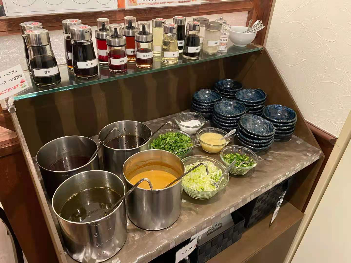 火锅蘸料可以说是火锅的灵魂,何鲜菇特别为每位顾客准备了多种口味的蘸料,有东北人爱吃的芝麻蘸料,还有四川人爱吃的香辣蘸料,最经典的是何鲜菇自家特制的海鲜蘸料。辅料还提供了香油,香菜,葱花,蒜蓉等,可根据自己的喜好自由添加。每种酱料都免费提供,无限次尝试,期待大家能够找到自己满意的味道呀。